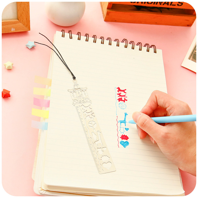 Handbook drawing template size fairytale world ruler metal wall tableplate ruler bookmark four selection