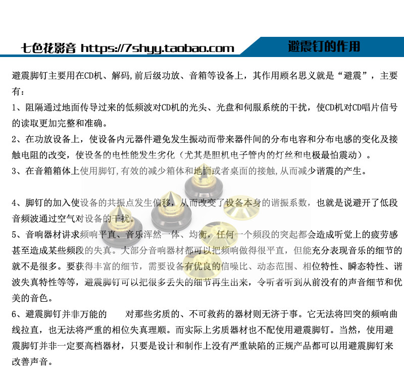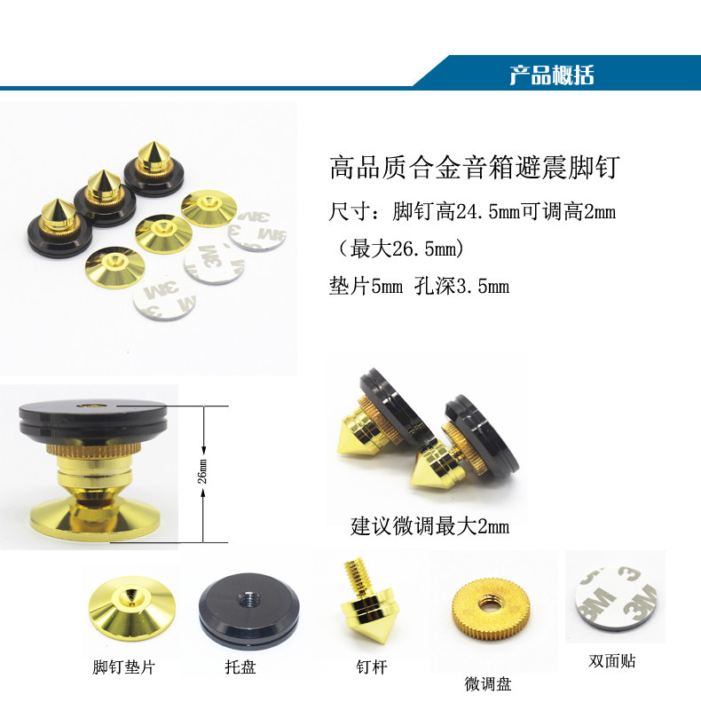 Pure copper gold-plated speaker shock absorber foot nail foot pad Hi-fi universal shock absorber nail 6 sets