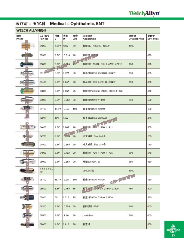 Welch Allyn 04400 11411 11470 Weillenglasses WA HPX 04400 2 5V bulbs