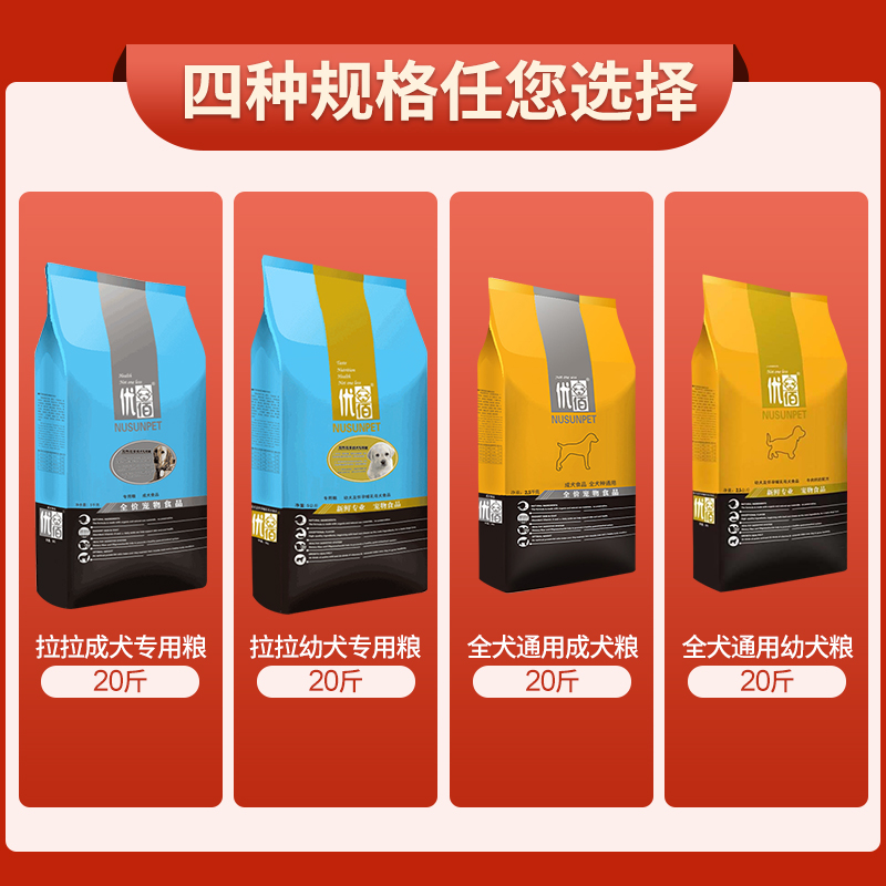 Labrador dedicated to dog dog food 20 catties (10 kilos * 2 sacks) Labrador special young dog food 20 catties (10 kilos * 2 bags) General adult dog dog food 20 catty (5 cat* * 4 bags)