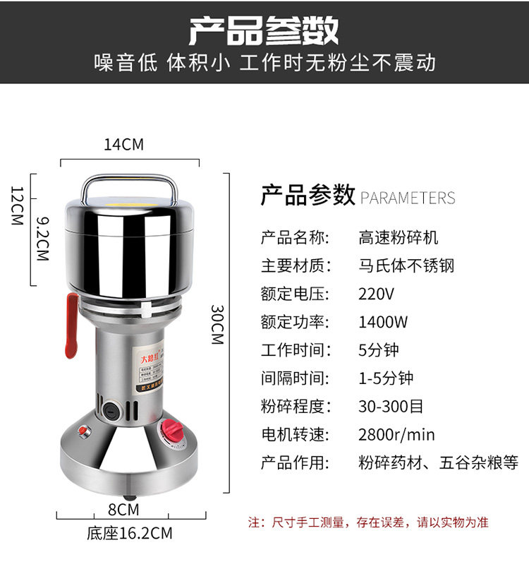 Stainless steel crusher household small medicinal materials high-speed thread cover grinding powder machine pharmacy electric