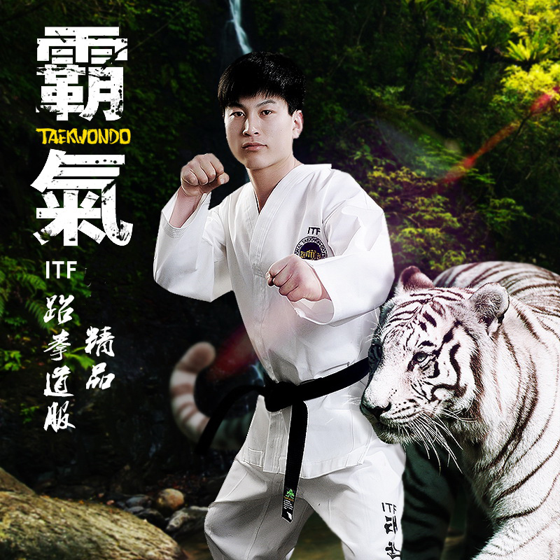 ITF taekwondo clothing all polyester cotton children adult training suit Velcro men and women white collar itf clothing