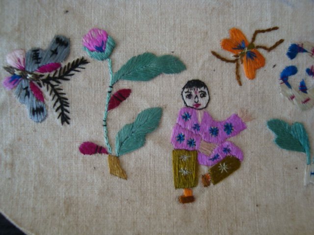 T792 Republic of China embroidery: girl's flower picture cotton cloth small pocket embroidered well