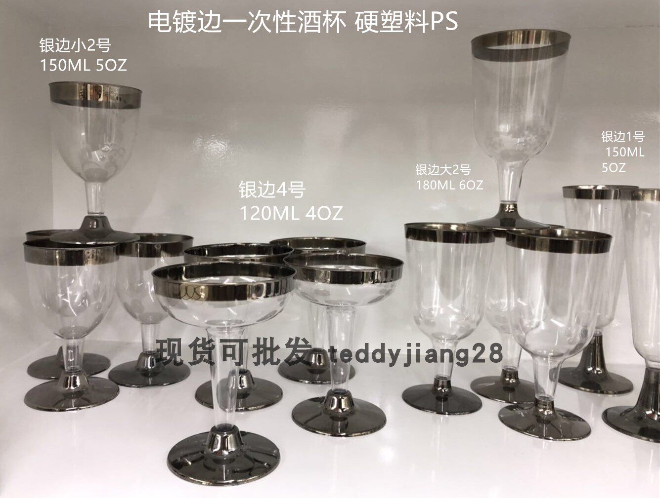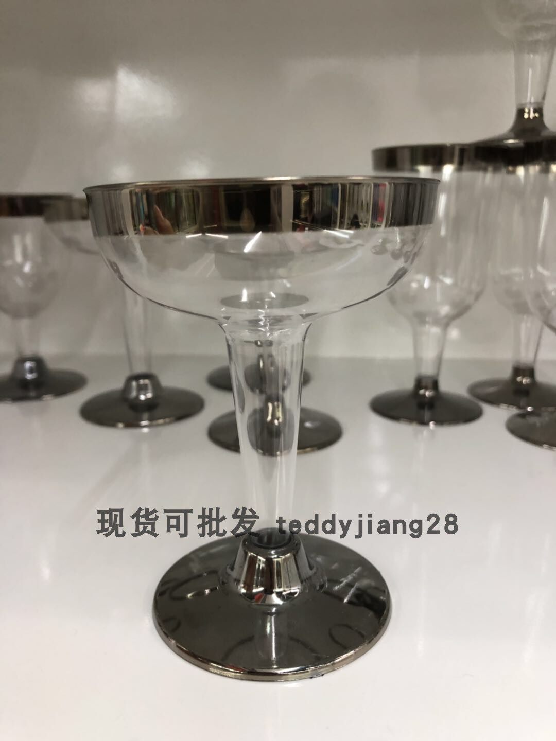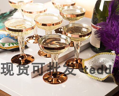 Party disposable champagne glass goblet wide mouth hard plastic champagne glass ice cream glass tasting glass wine glass silver rim