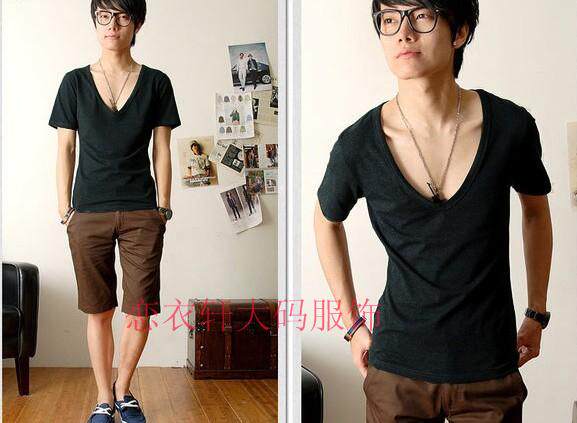 Summer explosion promotion for men's pure cotton fatty plus large short - sleeved large V - shirt multicolor