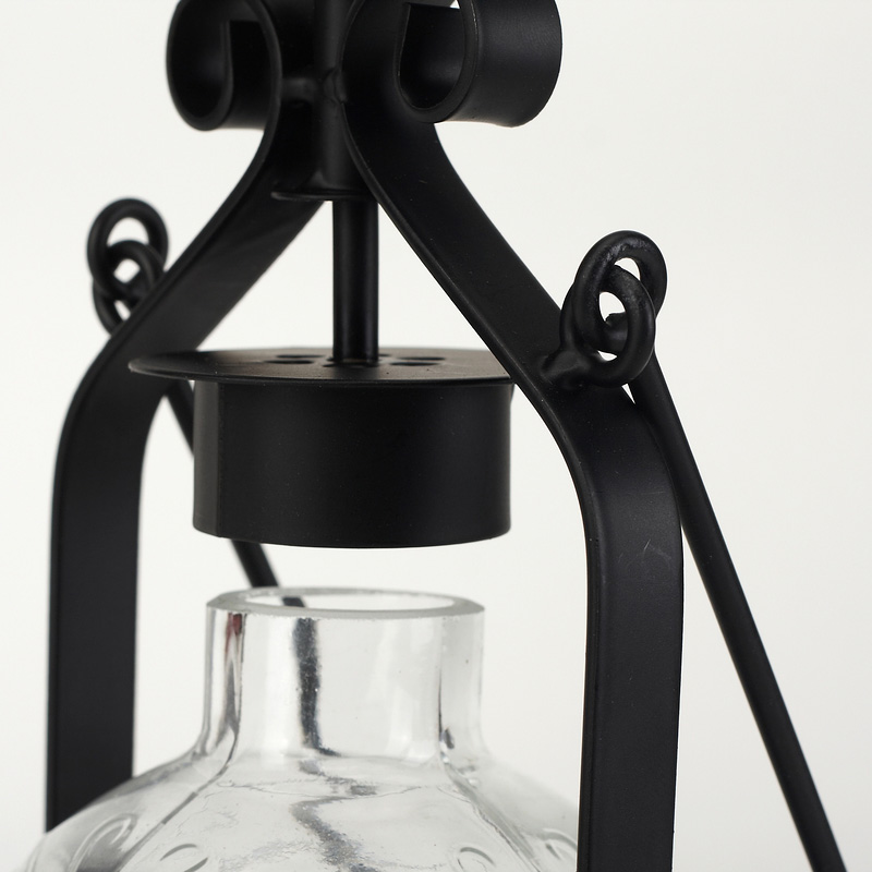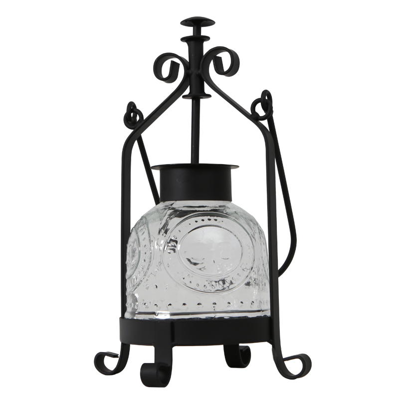 Glass cover candlestick ornaments Nordic romantic candlelight dinner props Portable candle light Retro vintage wrought iron oil lamp