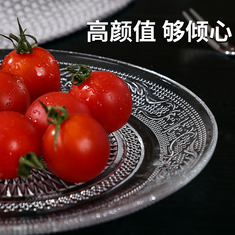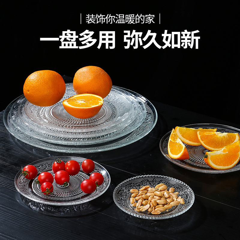 Creative transparent dish glass fruit dish KTV snack dish candy dish restaurant small dish round fruit plate bone plate