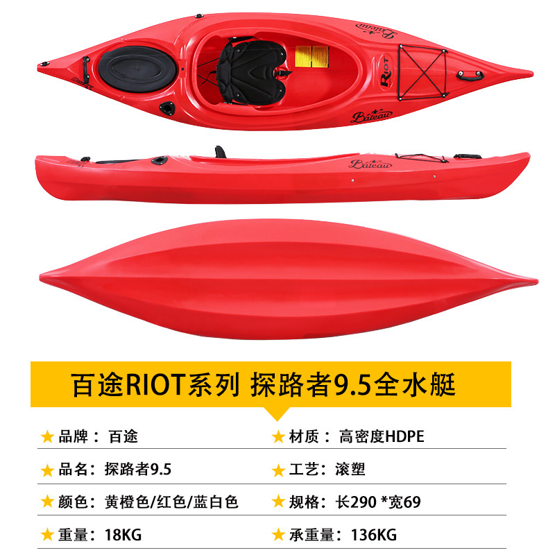 Canadian brand Baitu RIOT kayak single Explorer 9 5 Rotomolding hard boat torrent still water fishing boat