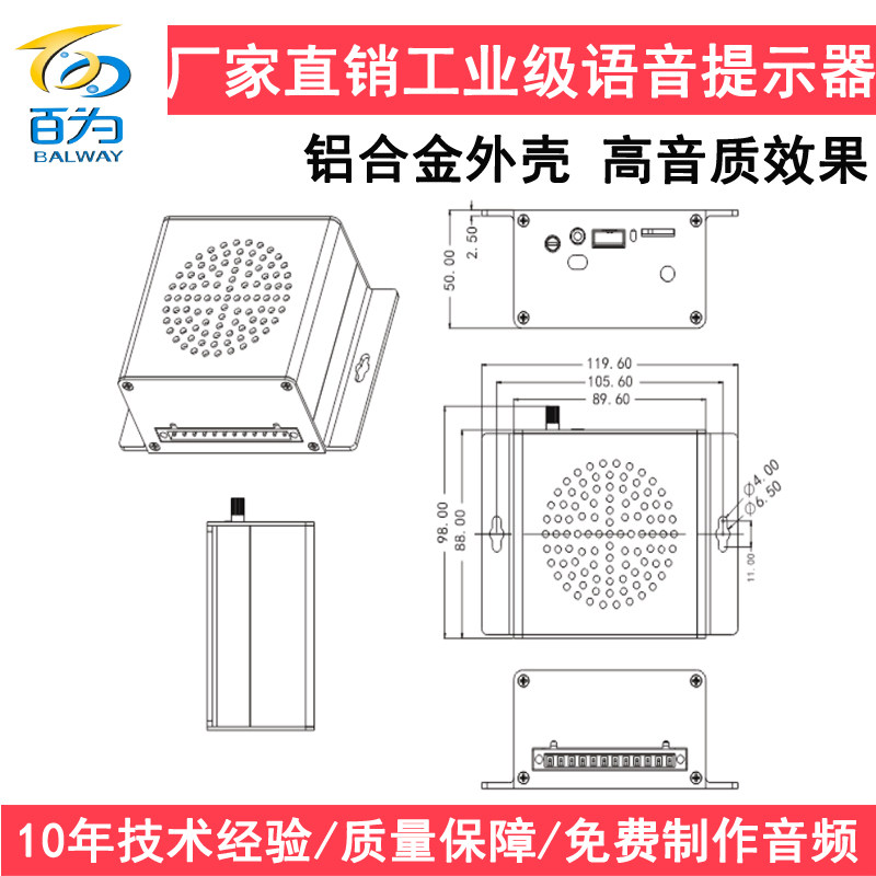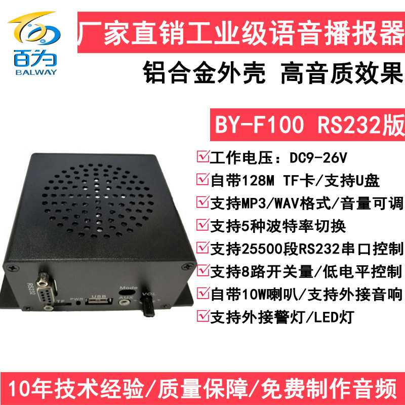 12V Voice module player serial port 232 plug card MP3 sound alarm speaker audio prompt BY-F100