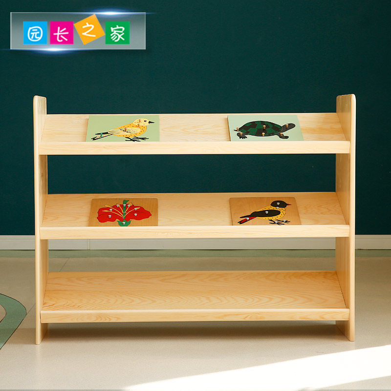 Boyuan Nursery Kindergarten Pine Wood Solid Wood Teaching Aids Cabinet Rack Hooded Teaching Aids Insert to young children Monzi's classroom furniture