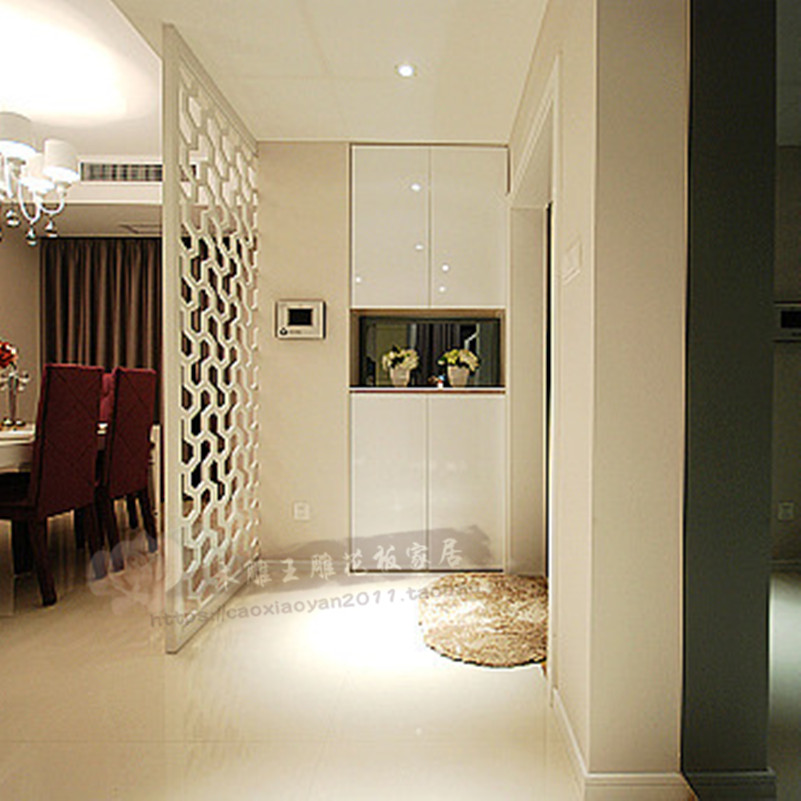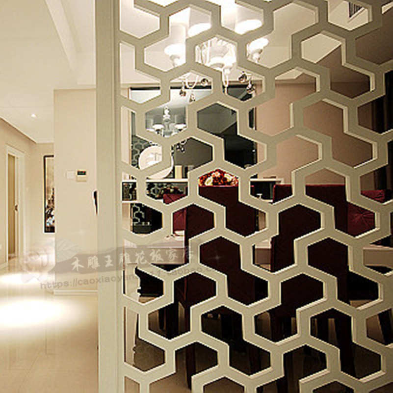 Simple entrance hollow porch carved board restaurant MDF checkered background wall European and American through flower board screen