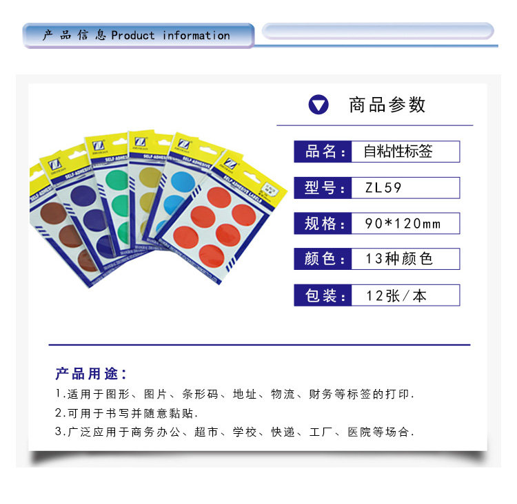 Zhulian self-adhesive self-adhesive handwriting label ZL59 diameter 30mm (round point label) 12 sheets of bag