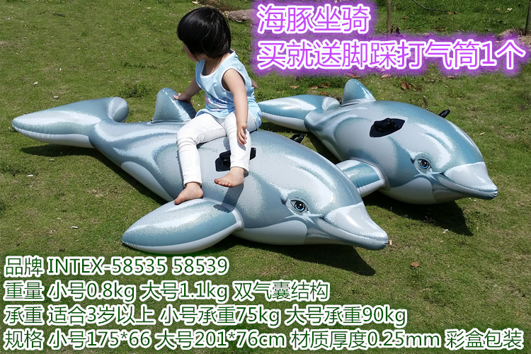 Intex children inflatable mount big dolphin swimming ring children water toy seat send pump