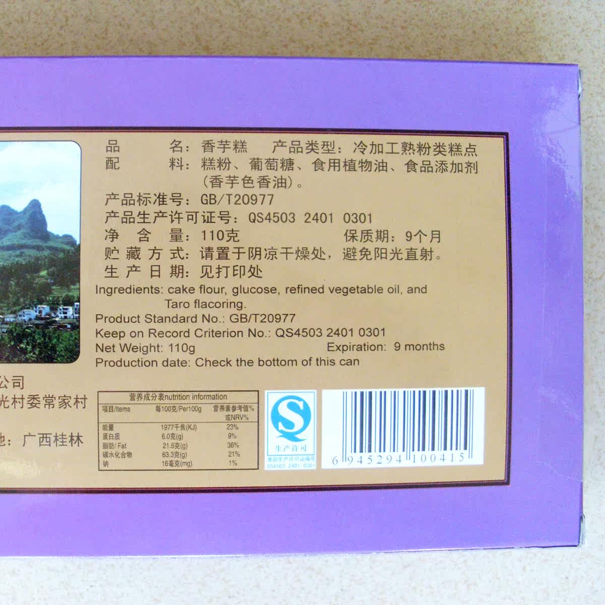 110 gr (fragrant taro cake) Guilin specialisation casual snack at the entrance to the traditional pastry