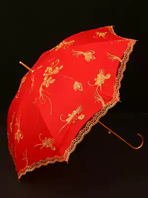 Wedding red umbrella Lace long-handled wedding umbrella Bridal umbrella Sunscreen dowry folding women's wedding craft umbrella