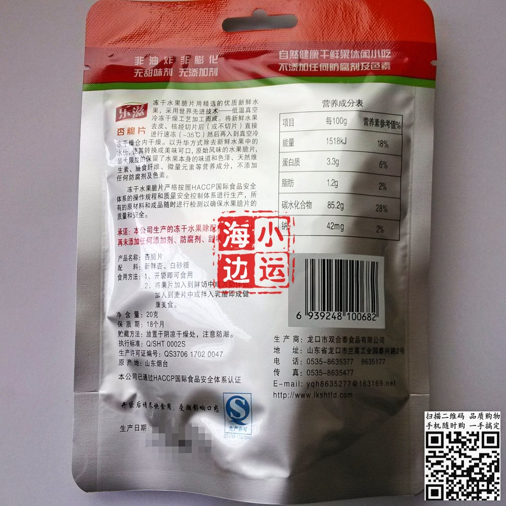 (10 bags) Yantai production place to deliver Le Yuzhi freeze dry apricot chip 13 flavors optional 20g