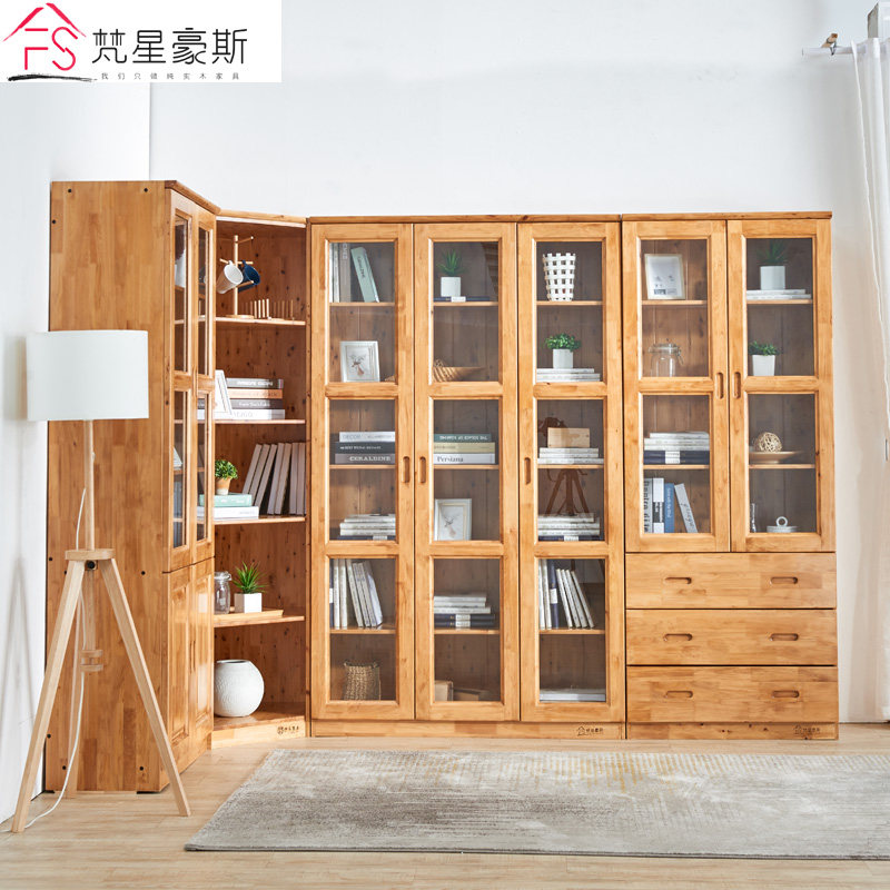 Cypress corner bookcase Solid wood bookcase storage cabinet combination with glass door Corner bookcase custom modern Chinese style