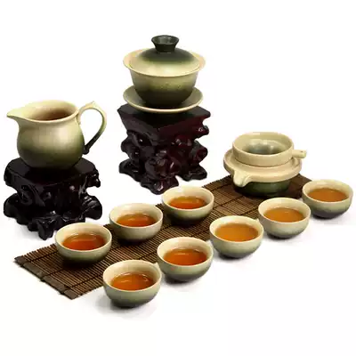 Bamboo Green Ancient Pottery Tea Set Collection|Retro ceramic household Kung Fu tea pot cover bowl Fair cup Tea cup Tea wash