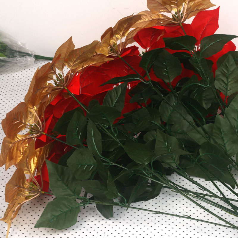 Simulation flower Christmas flower Poinsettia golden single branch Home engineering decoration safflower fake flower factory sales