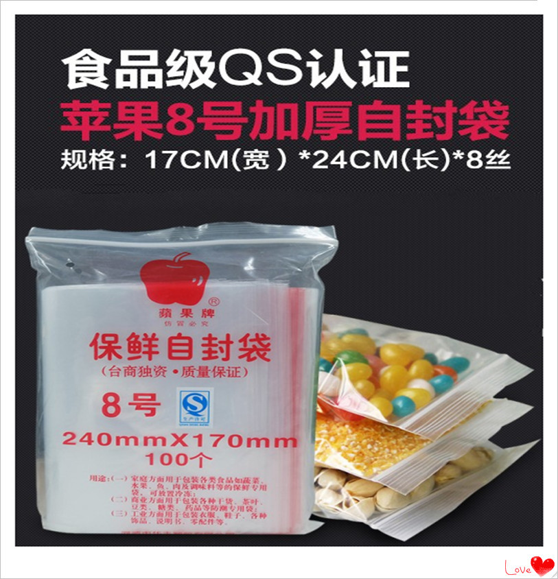 Apple brand ziplock bag No. 8 sealed food bag product packaging bag thickened sealing ziplock bag special sale