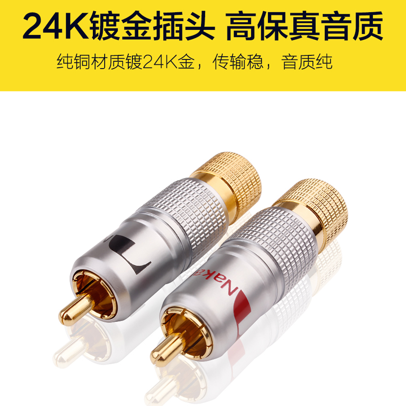 Taiwan midway pure copper gilded lotus head plug with lock signal wire connector sub RCA plug audio plug