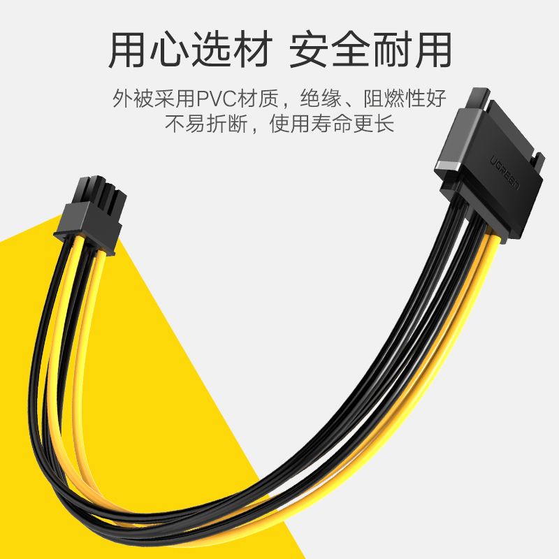 Green connection SATA line 15p to 6pin reverse adapter desktop computer host external 6-pin graphics card power cord