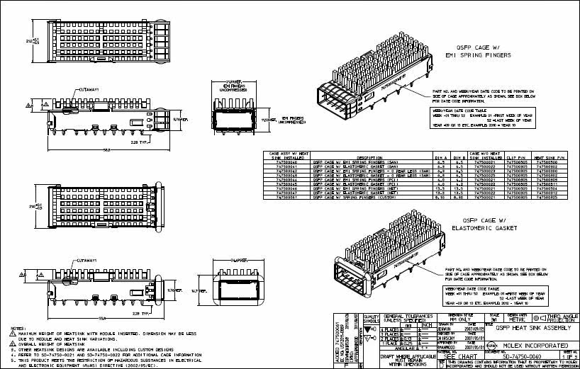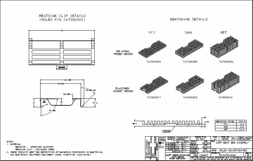 Molex QSFP Shielded Iron Shell with Radiator 1X1 Single Port 747500045
