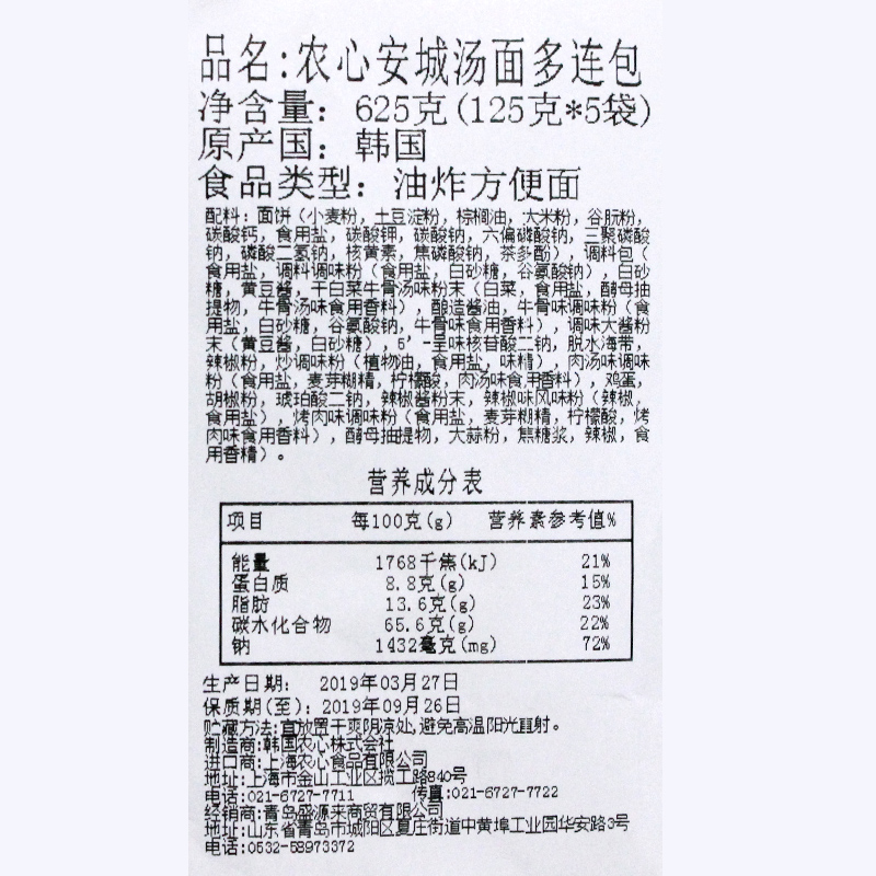 Nongshim Ancheng soup noodles Korean ramen Imported instant noodles Instant noodles Spicy ramen 5 bags of strength and non-greasy