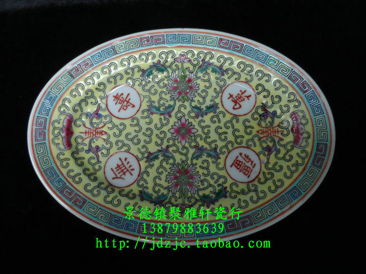 Bag Old Jingdezhen Cultural Revolution Old factory goods Porcelain Handmade Powder yellow Wanshou No Xinjiang 8-inch fish disc waist-shaped disc