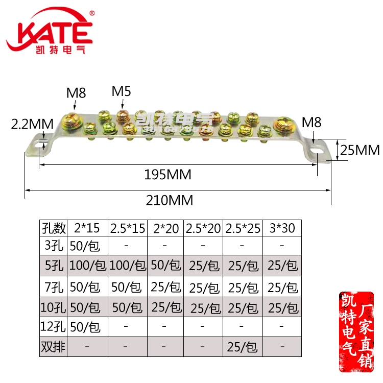 Double row 21 hole ground row 2 5*25 total length 210 brass zero ground row terminal bus copper row KT056