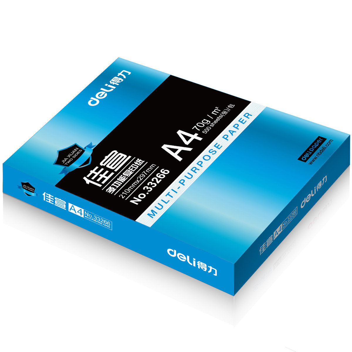 Deli A4 photocopy paper Jia Xuan 33266 pure wood pulp printing copy paper 70g 500 A4 paper