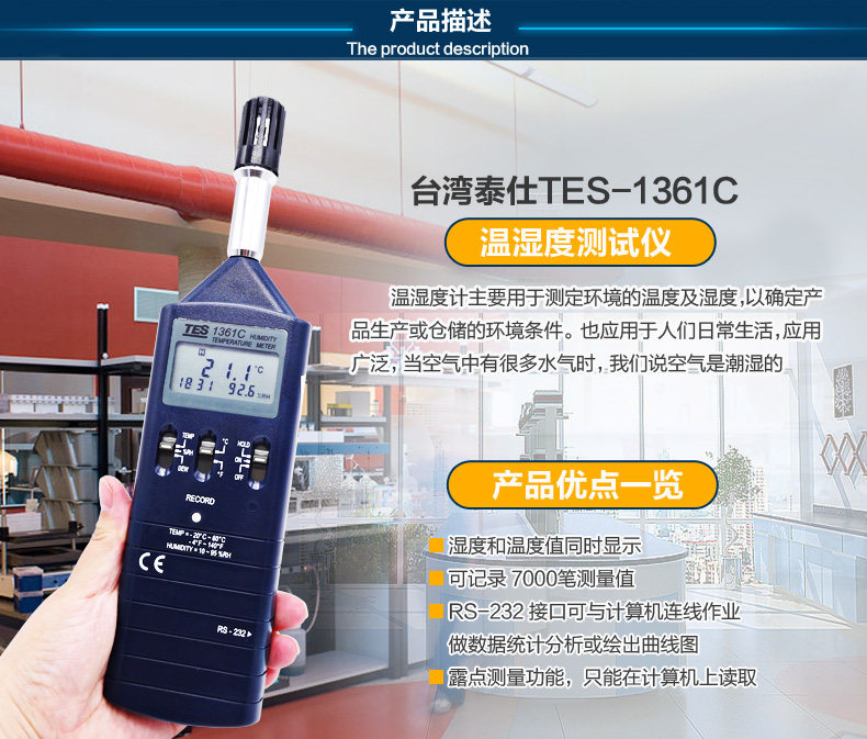 Taiwan Taishi TES-1361C memory temperature and humidity meter recording temperature and humidity meter handheld humidity meter