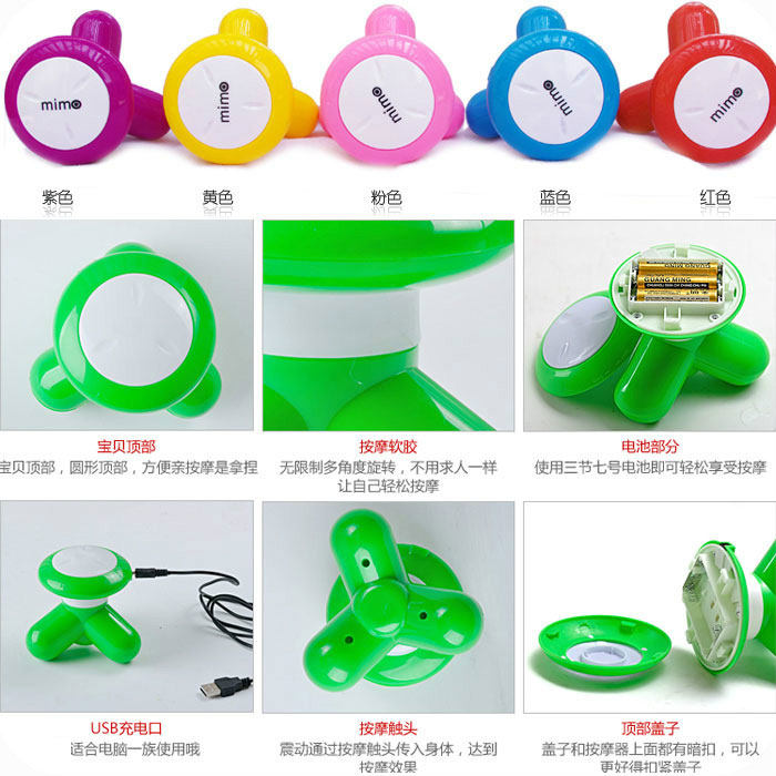 Multi-function full body vibration Mini small massager Household USB plug-in handheld electric triangle acupressure instrument