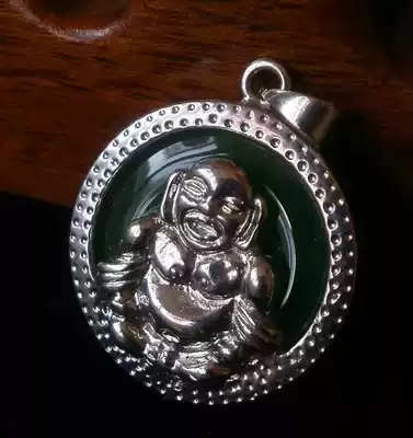 Number 1311016 alloy inlaid Malay Jade smile Buddha pendant jade pendant Maitreya Buddha pendant
