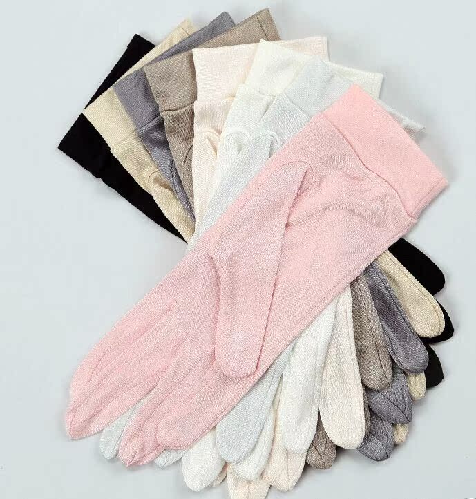 Real silk glove thin section female male 100% mulberry silk sleep sleeping knit elastic stickhand tight body disc beads short