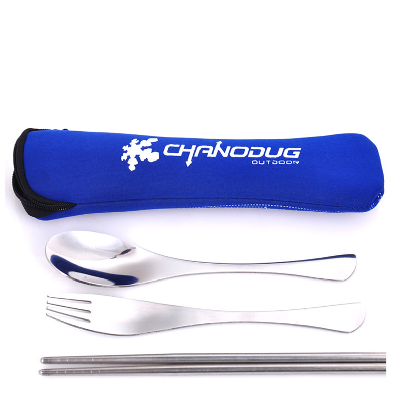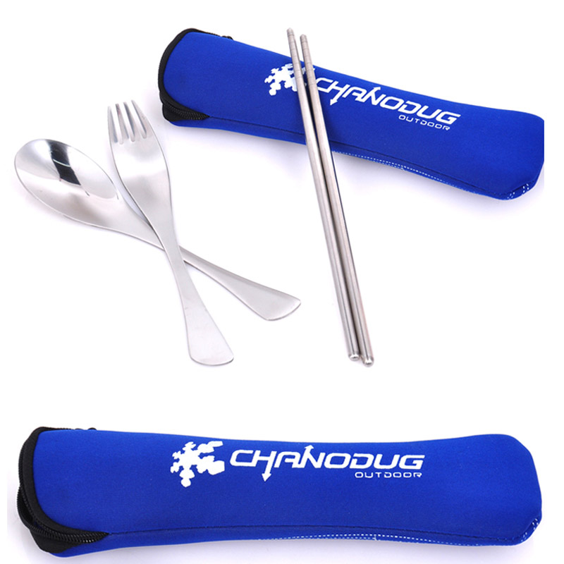 Shanuoduoji Outdoor Mini Tableware Stainless Steel Folding Chopsticks Fork Spoon Spoon Send Cloth Set Travel Picnic