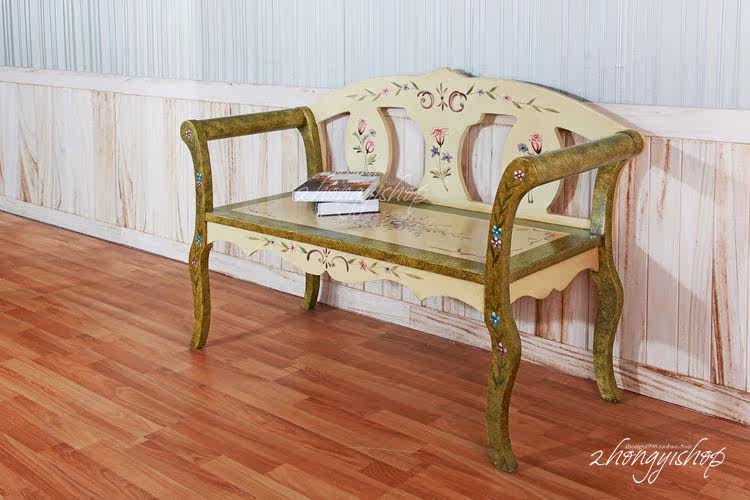 Pastoral Furniture Pastoral Style Double Chair European Lover Chair Garden Chair Solid Wood Sofa Chair Leisure Chair Coffee Chair
