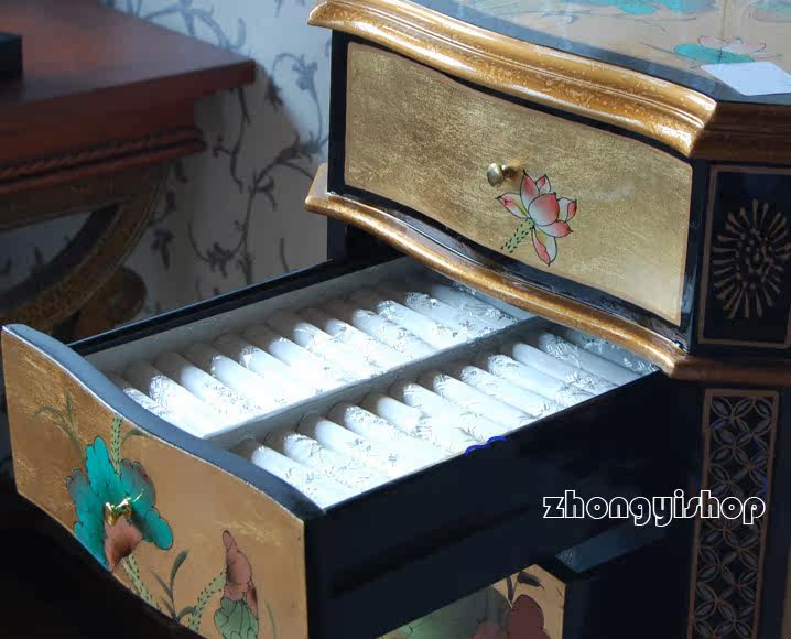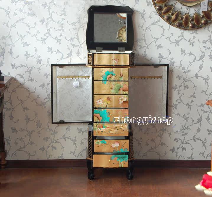 New Chinese style Chinese wind gold foil hand painted furniture Seven bucket cabinets Jewelry Cabinet Jewelry Cabinet Gold Leaf Lotus Flowers