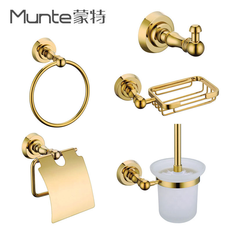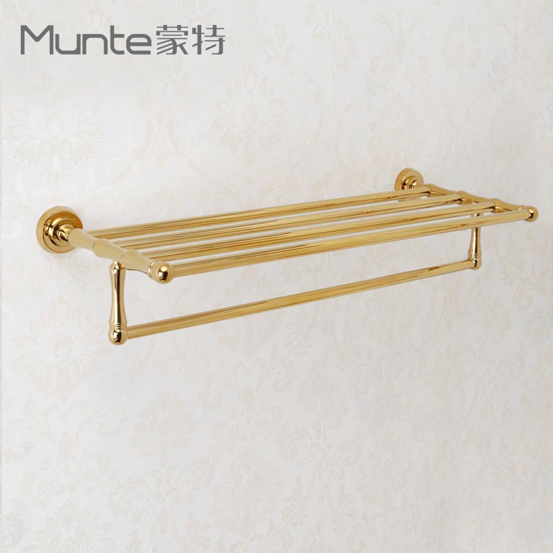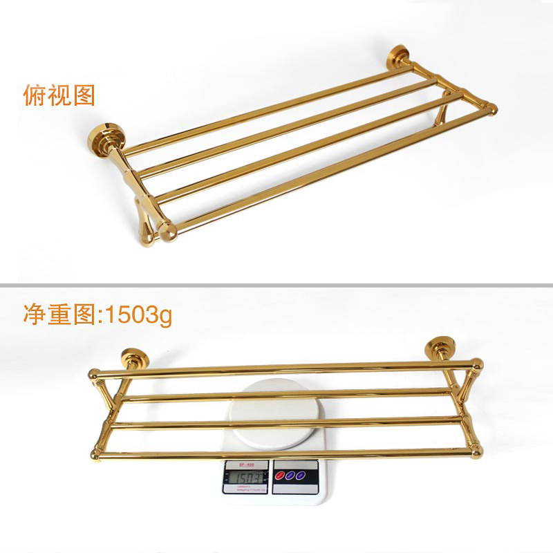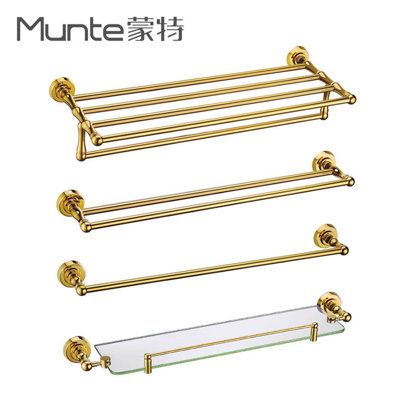 Monte bathroom Titanium gold bathroom pendant Double European towel rack Bath towel rack Antique brass bathroom wall hanging