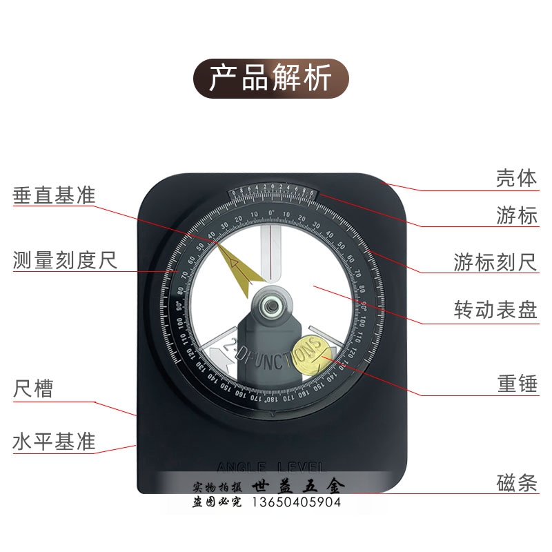 Taiwan Yichen ECE level magnetic angle gauge A100 A300 A500 600 horizontal angle meter