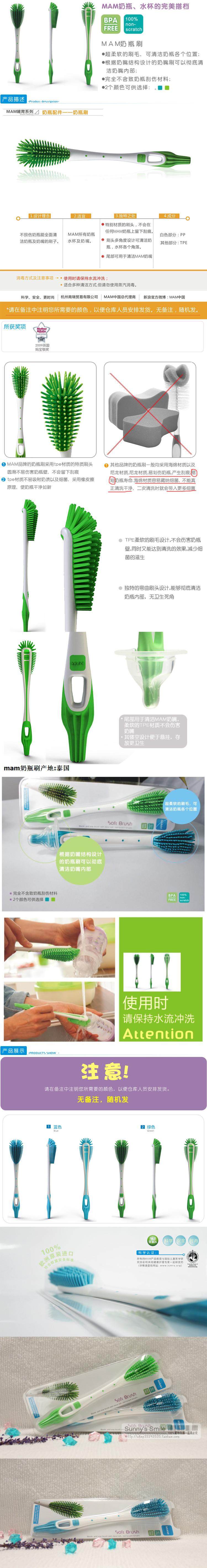 Original MAM Beauty Baby Silicone Bottle Brush Multifunctional Nipple Brush Cleaning Clean Soft Long Handle Brush