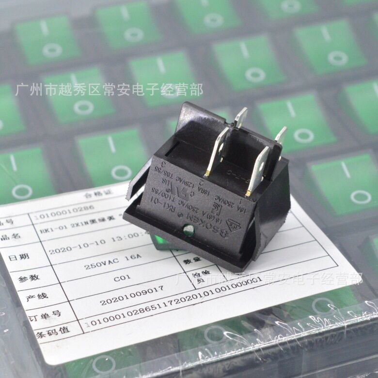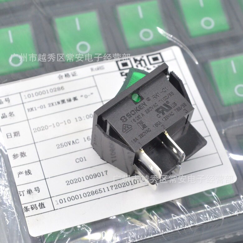SOKEN Ningbo Mastership shaped switch power switch RK1-01 2 * 1N 4 feet black green with lamp