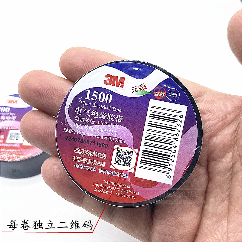 Guaranteed 3M tape electrical insulating tape electrical tape flame retardant 1500 lead-free whole barrel with anti-counterfeiting label