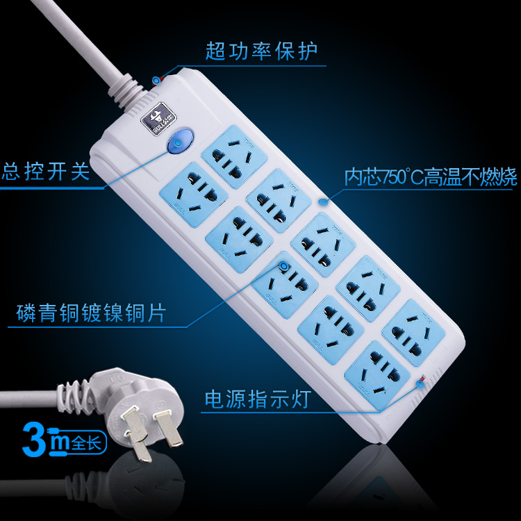Bull Power Socket GN-218 Wireless 604-605 3 m 3 m 10 m overload protection 10-bit national punctuate