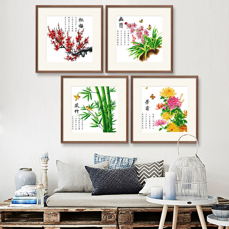 Cross embroidered 2022 new line embroidered Melanzhu quad set living-room itself embroidered with small and simple embroidery