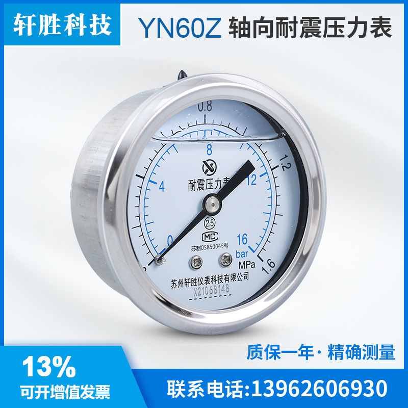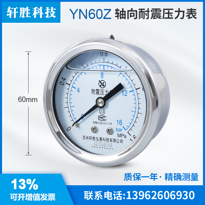 Suzhou Xuan Shengsheng YN60Z 1 6MPa axial shock resistant pressure meter stainless steel housing axial shock-proof pressure meter