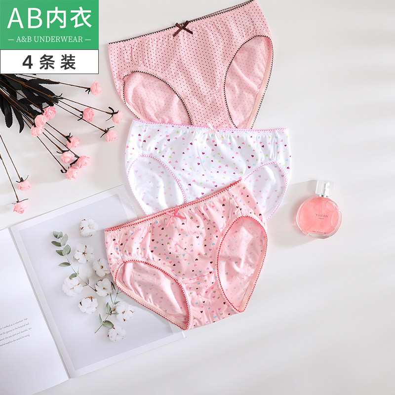 ab panties women's stretch cotton slim sweet print youth low waist girl student triangle shorts D001