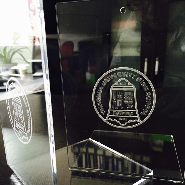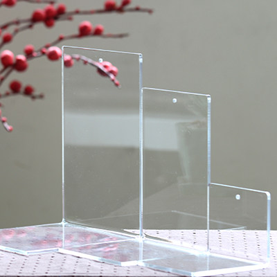 Simple design unprinted transparent acrylic book stand bookend book separated by a single book by the sideboard large custom logo