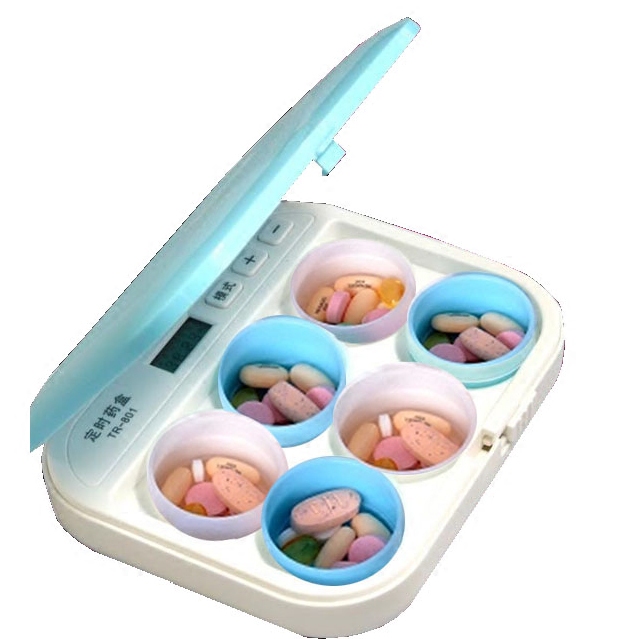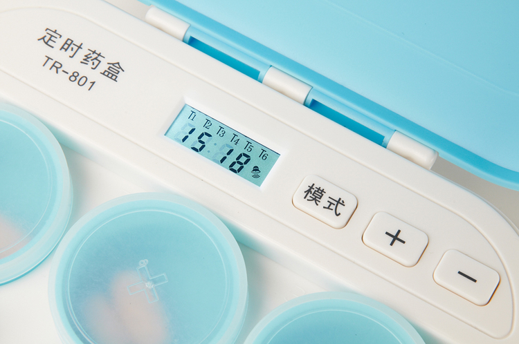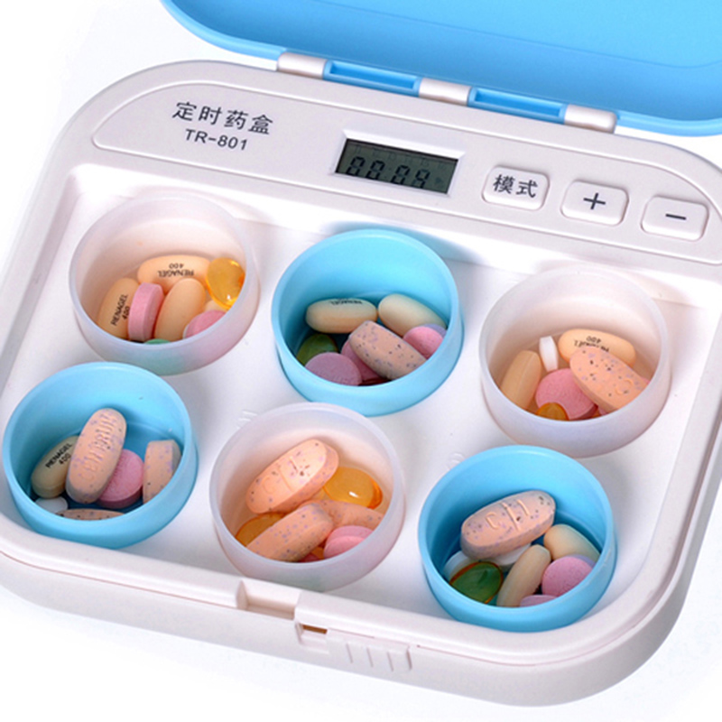 Senior people take medication reminder small pill box portable alarm clock smart electronic reminder of drug box taking prompts
