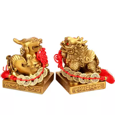 Juyuan Pavilion Pixiu decoration Brass Chinese style lucky fortune Pichu pair Home office decoration craft gift